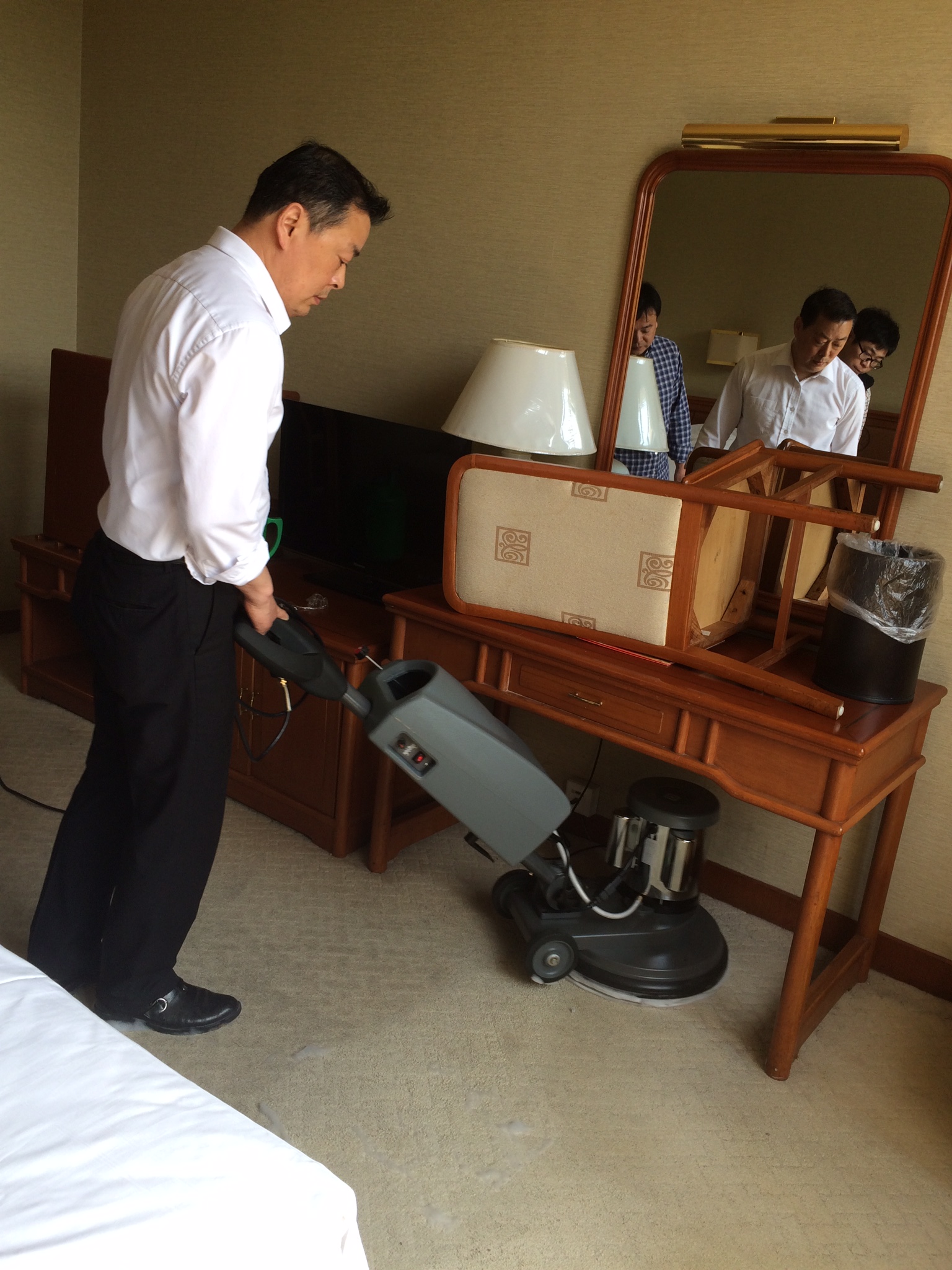 玻璃:目視無水痕、無手印、無積塵、光亮潔凈。 衛(wèi)生間:墻體無色差、無明顯污漬、無涂料點、無膠跡、潔具潔凈光亮、不銹鋼管件光亮潔凈、地面無死角、無遺漏。 大廳:墻壁無塵土,燈具潔凈,開關盒潔凈無膠漬,排風口、空調(diào)出風口無灰塵、無膠點。 門及框標準:無膠漬、無漆點、觸摸光滑、有光澤、門沿上無塵土。 地面:無膠漬、潔凈;石材表面無塵土、無漆點、無水泥漬、無膠點。