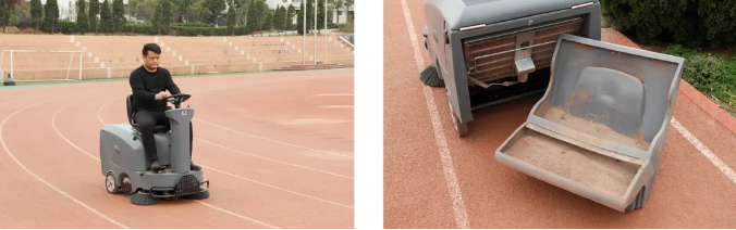 塑膠跑道,表面多為紅色顆粒層,易產(chǎn)生膠粒、沙粒等異物,因表面凹凸且粘性大,清潔難度大,清潔和養(yǎng)護(hù)措施匱乏。