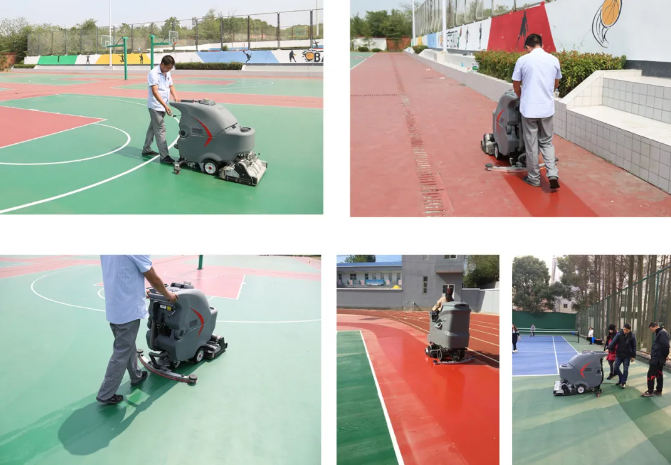 籃球場、羽毛球場、乒乓球場、網(wǎng)球場等各類場館,地面多為水泥、瀝青、復(fù)合塑膠、地板等,使用率高,在設(shè)有體育專業(yè)的學(xué)校,養(yǎng)護(hù)要求較高。